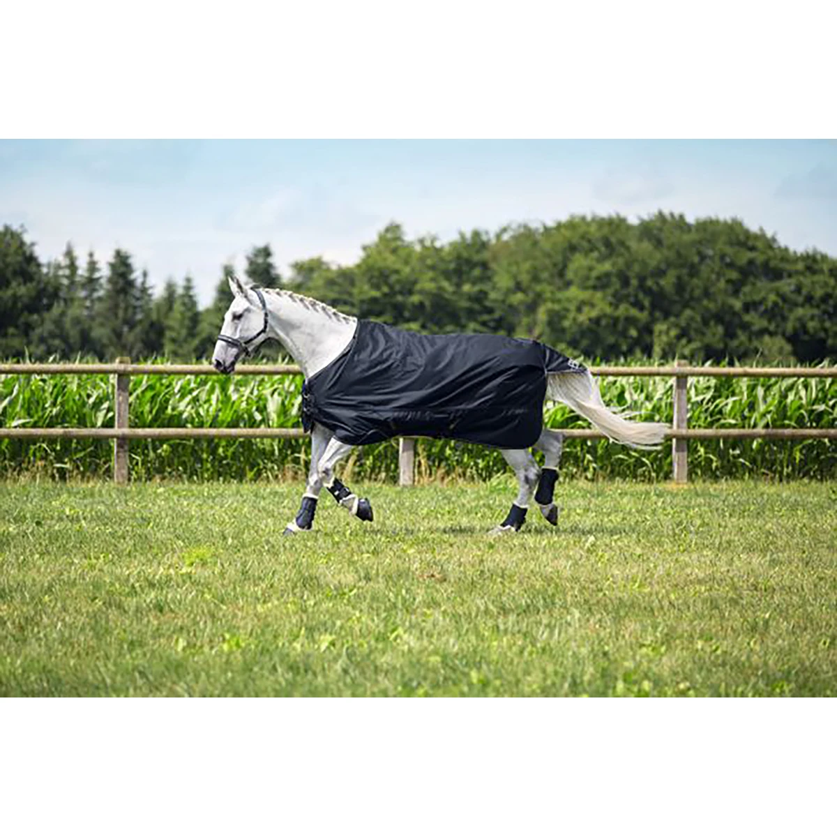 - wordt geleverd inclusief verlengstuk, waardoor de deken ook past op paarden met brede borst en schouders