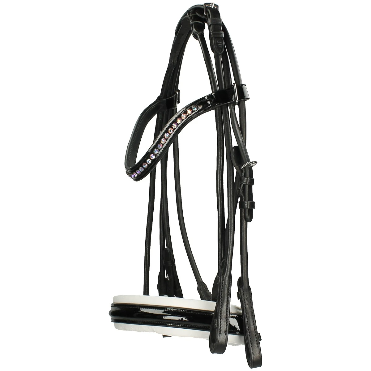 - luxe, hangende frontriem van lakleer en met strasssteentjes